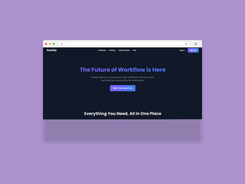 * **7 Fully-Coded Sections:** Hero, Features, Testimonials, Pricing, FAQ, and Footer.